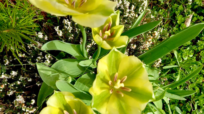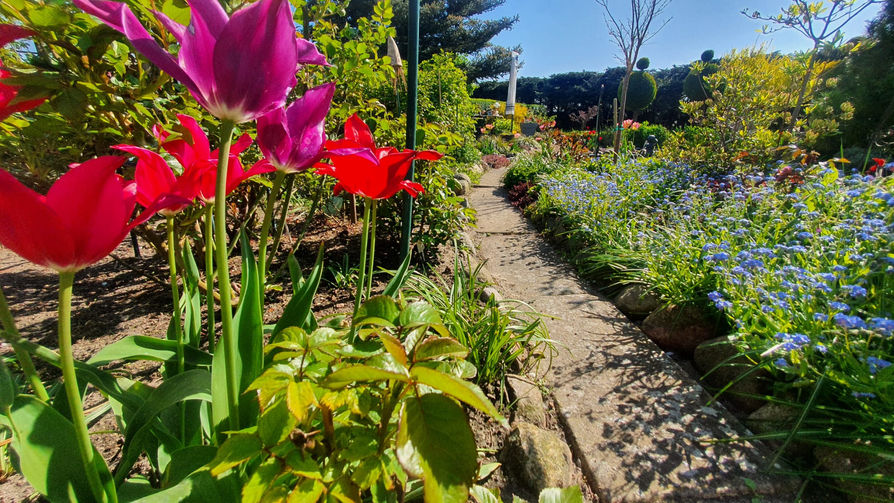 Im zeitigen Frühjahr öffnen sich unsere Herzen im Angesicht der unzähligen Frühblüher in fast allen Farben. Schneeglöckchen, Krokusse, Tulpen, Osterglocken, Narzissen, Winterheide, Christ- und Lenzrosen, Veilchen, Primeln, Stiefmütterchen, Hornveilchen, Vergissmeinnicht, Glockenblumen, Wolfsmilch, winterharte Alpenveilchen, Leberblümchen - die Edelsteine des Frühlings, Rhododendren, Ginster, Flieder sowie viele Topf- und Kübelpflanzen, u.a. Kamelien, Hibiskus, Kakteen und Geranien zeigen ihren beeindruckenden Blütenflor.